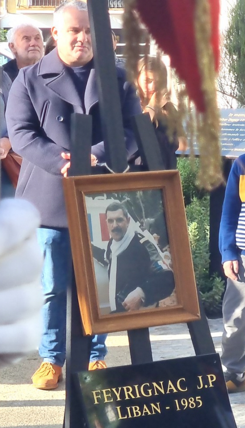 Un piquet d'honneur de l'Escadron de Protection de la BA 702 Avord est venu honorer, en présence de sa famille, le capitaine Jean-Pierre Feyrignac, fusilier commando, ancien commandant de cette d'unité. Casque bleu de l'ONU, cet enfant de La Teste de Buch, est "Mort pour la France" au Liban en 1985 en mission d'observations du cessez-le-feu.