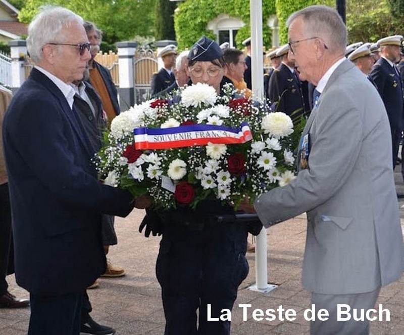 Les cérémonies se sont déroulées en présence de Monsieur le maire Patrick Davet, du colonel Pierre Charrier, commandant la Base Aérienne 120 Cazaux, du LCL Quimerch, commandant en second de la Base, des représentants de la Gendarmerie, Police Nationale, Police municipale et Sapeurs Pompiers, des autorités civiles et religieuses, des élus du Conseil municipal des Jeunes, des délégations de personnels militaires de la BA120 et de l'escadron Singapourien de Cazaux, de l'Orchestre d'Harmonie de la Teste de Buch, des anciens combattants, de nos fidèles porte-drapeaux, des différentes associations testerines, ainsi que du public venu très nombreux. La ville de La Teste de Buch mit à l’honneur le colonel André-Armand Legrand. Pilote de chasse au Groupe de Chasse 2/5 "La Fayette", aviateur illustre, As de Guerre avec plus d’une dizaine de victoires à son actif.
