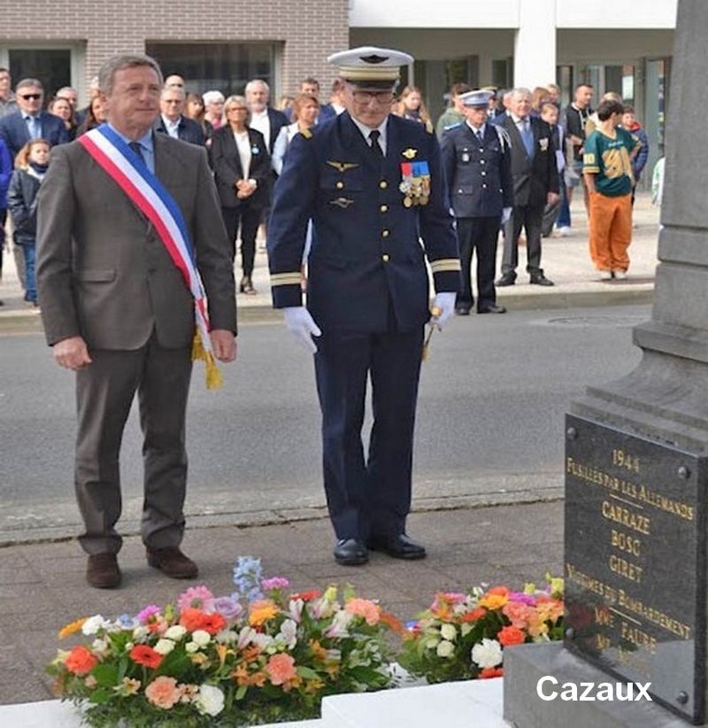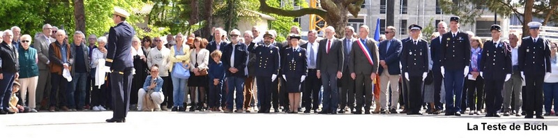 Les cérémonies se sont déroulées en présence de Monsieur le maire Patrick Davet, du colonel Pierre Charrier, commandant la Base Aérienne 120 Cazaux, du LCL Quimerch, commandant en second de la Base, des représentants de la Gendarmerie, Police Nationale, Police municipale et Sapeurs Pompiers, des autorités civiles et religieuses, des élus du Conseil municipal des Jeunes, des délégations de personnels militaires de la BA120 et de l'escadron Singapourien de Cazaux, de l'Orchestre d'Harmonie de la Teste de Buch, des anciens combattants, de nos fidèles porte-drapeaux, des différentes associations testerines, ainsi que du public venu très nombreux. La ville de La Teste de Buch mit à l’honneur le colonel André-Armand Legrand. Pilote de chasse au Groupe de Chasse 2/5 "La Fayette", aviateur illustre, As de Guerre avec plus d’une dizaine de victoires à son actif.