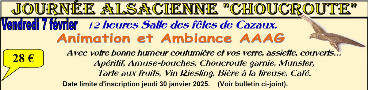 Bulletin inscription à la Choucroute du vendredi 7 février 2025 à Cazaux