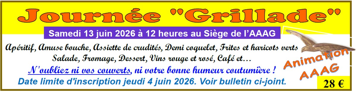 Rappel : Du 12 au 17 septembre aura lieu un voyage dans le Jura. Des places sont encore disponibles. Le prix de ce séjour est actuellement de 1330€. Quelques personnes intéressées en plus (minimum 5), feraient baisser le prix à 1220€ par personne, payable en 3 fois. Voir page 8 du Bulletin n° 131.